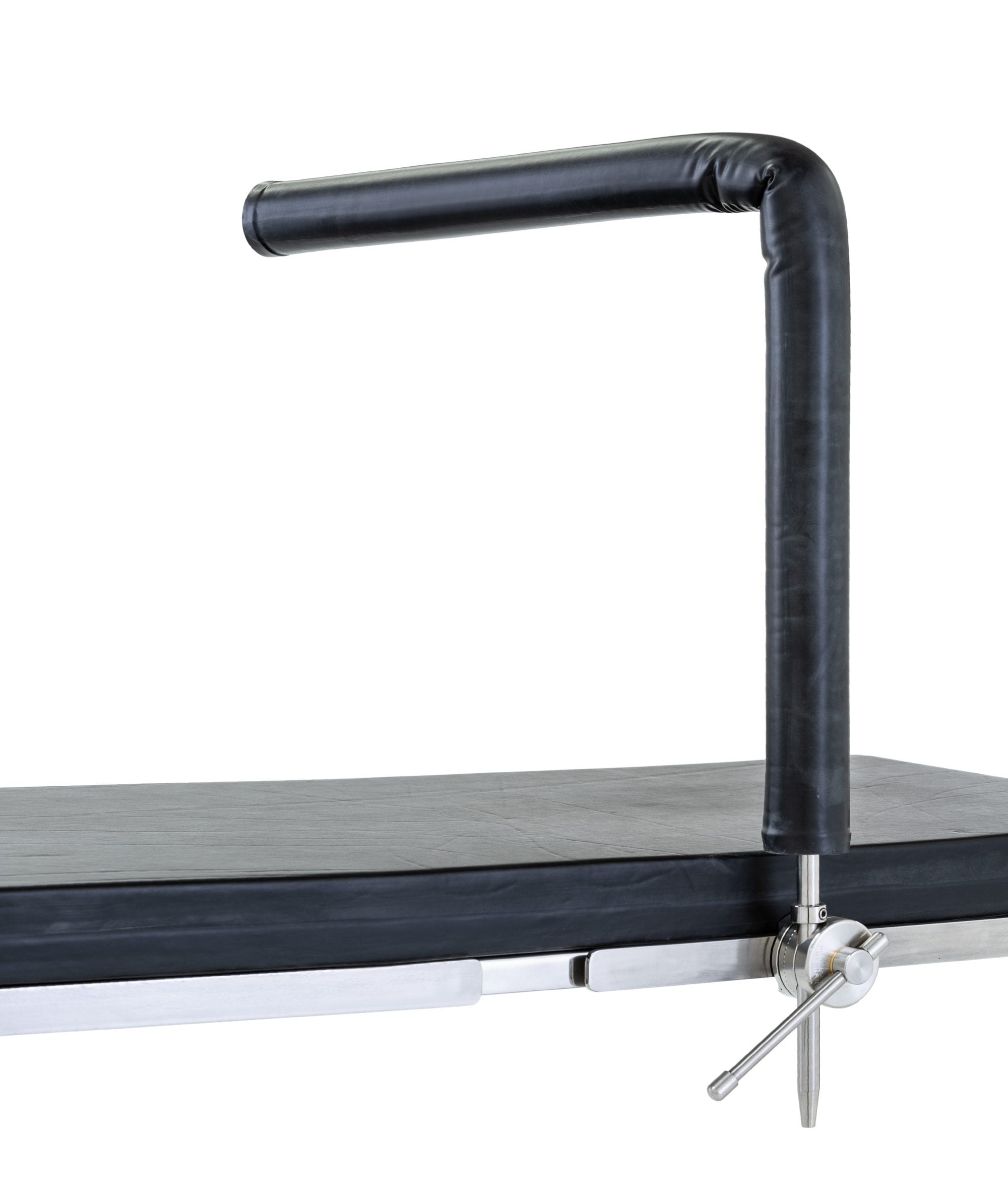 Ensure the correct round bar clamp is selected for the operating table, slide the clamp onto the accessory rail.