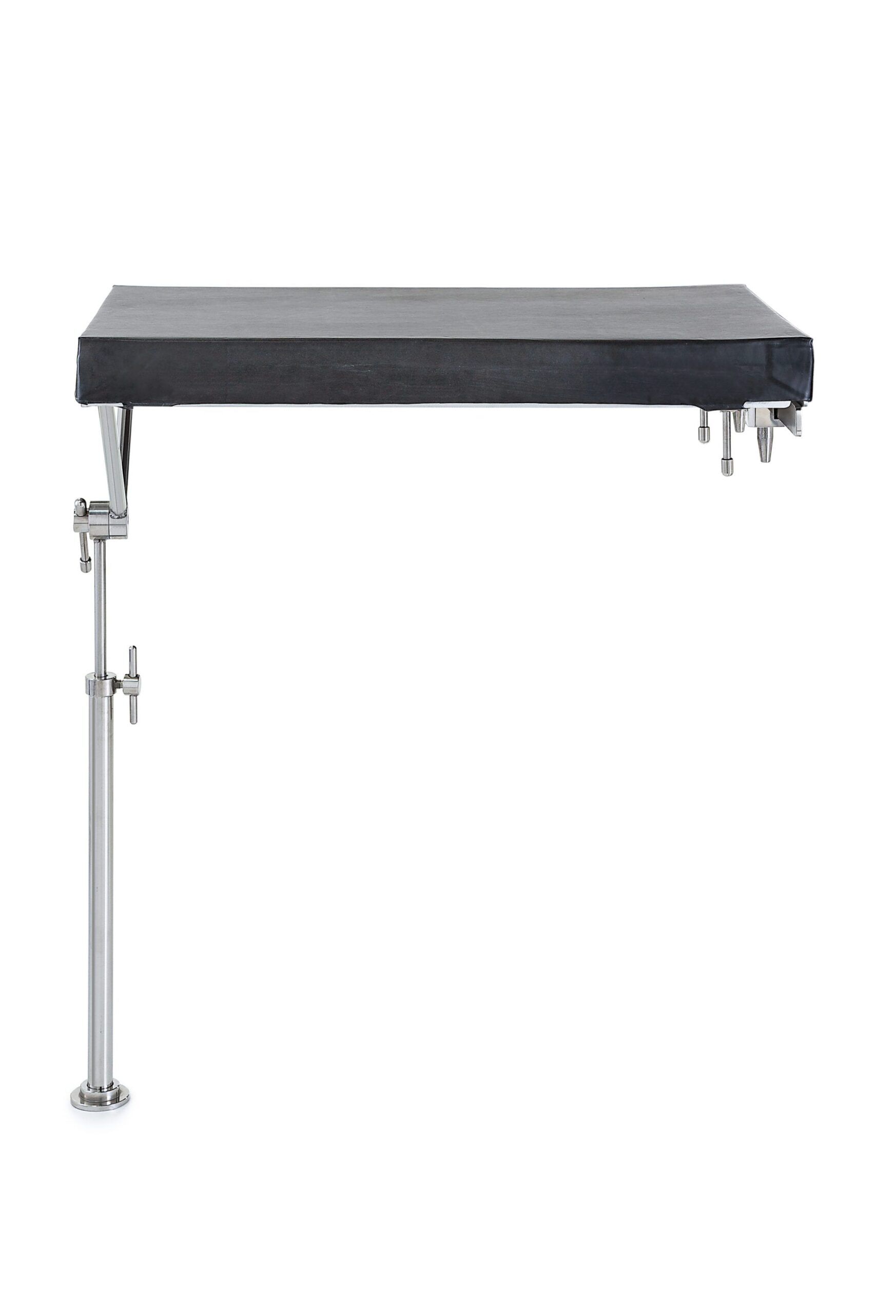 - Choose the correct accessory clamps for the operating table that the Arm Table is being attached.Slide the accessory clamp onto the accessory rail at the desired position.Slot the round bars on the Large X-Ray Arm Table into the clamps and tighten.