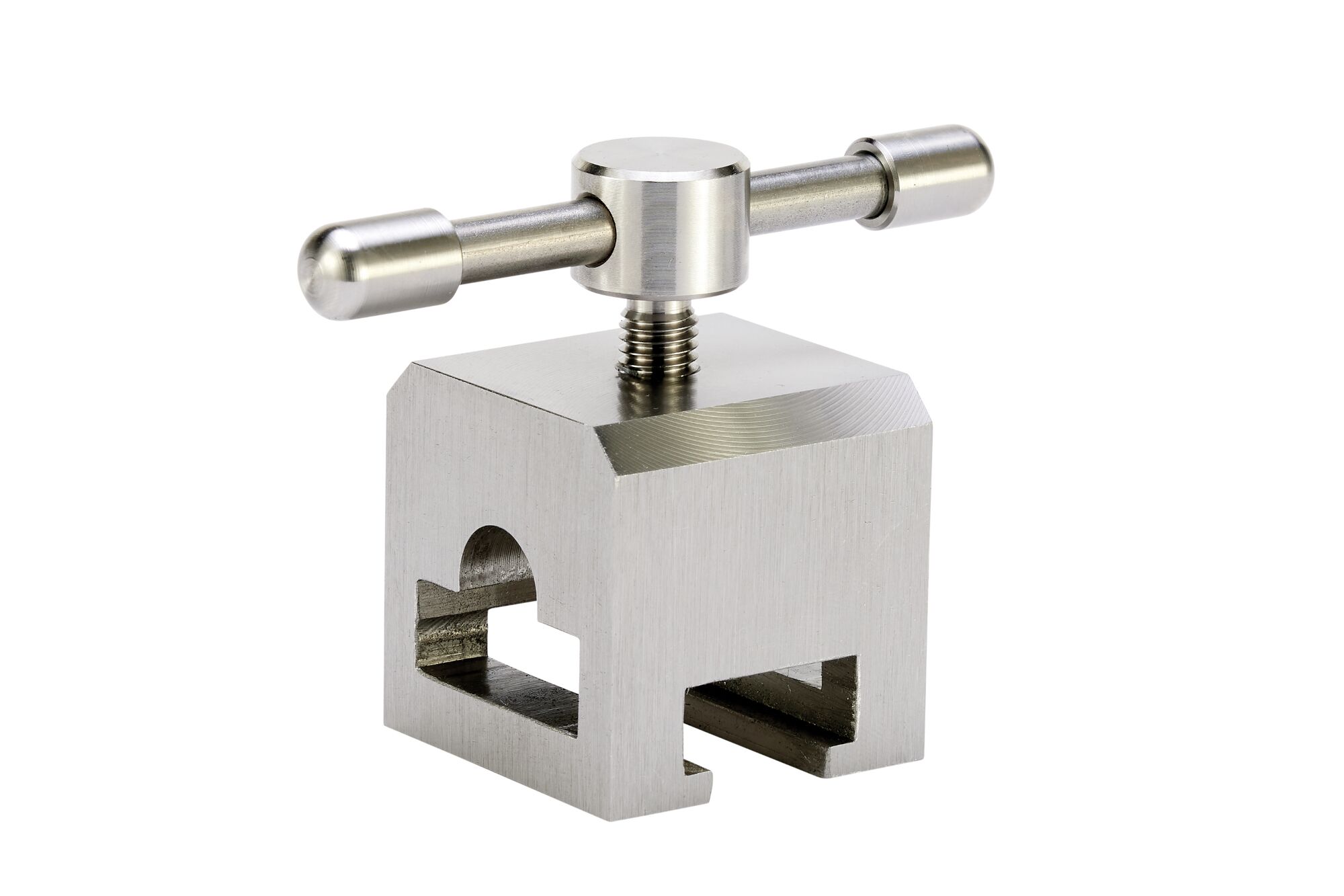 This clamp is specifically manufactured to use for both flat bar and round bar clamps to save swapping clamps when there is a change in accessories, or to reduce the amount of clamps that are required.